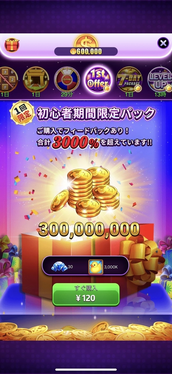 金額が低い上にレベルが1700とやる気をそぐ内容ですが、取り合えず手持ちコインが尽きるまではやってみるつもりです。